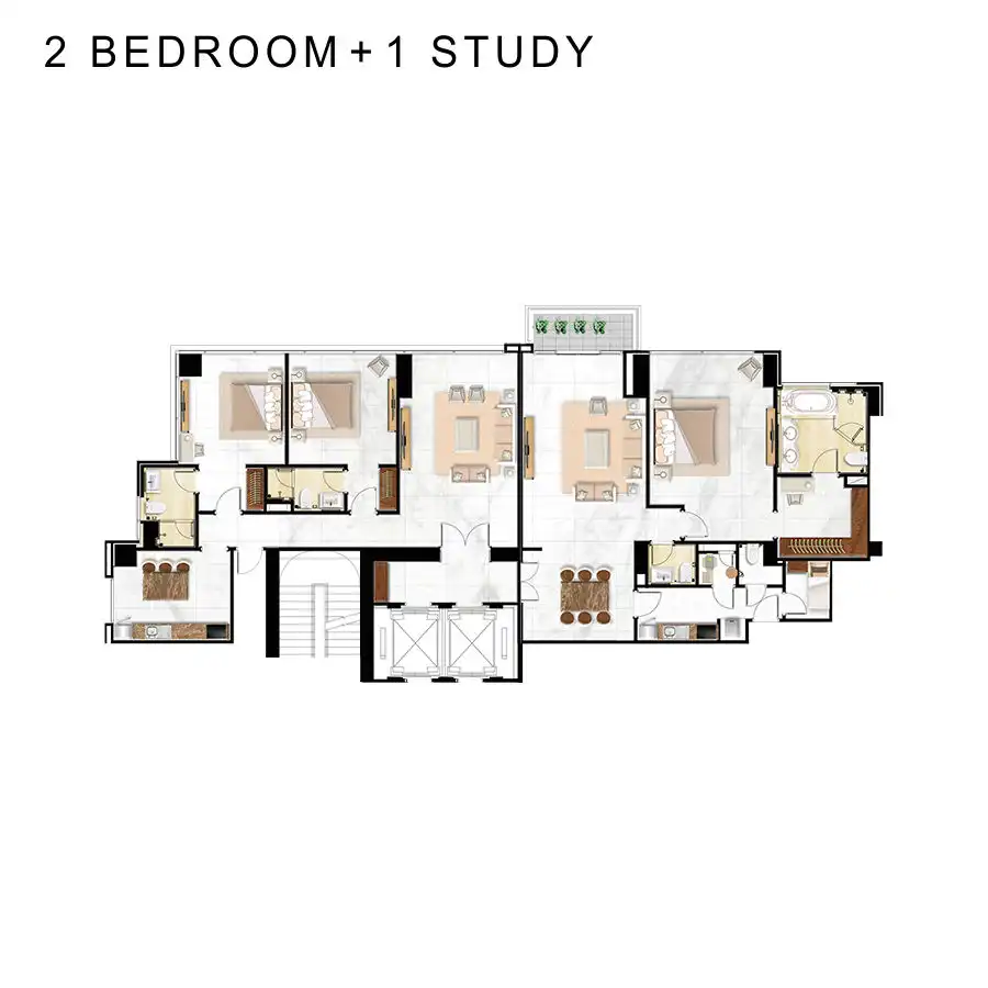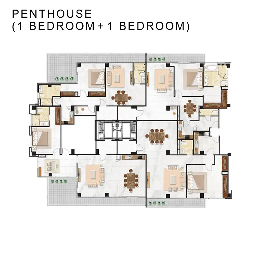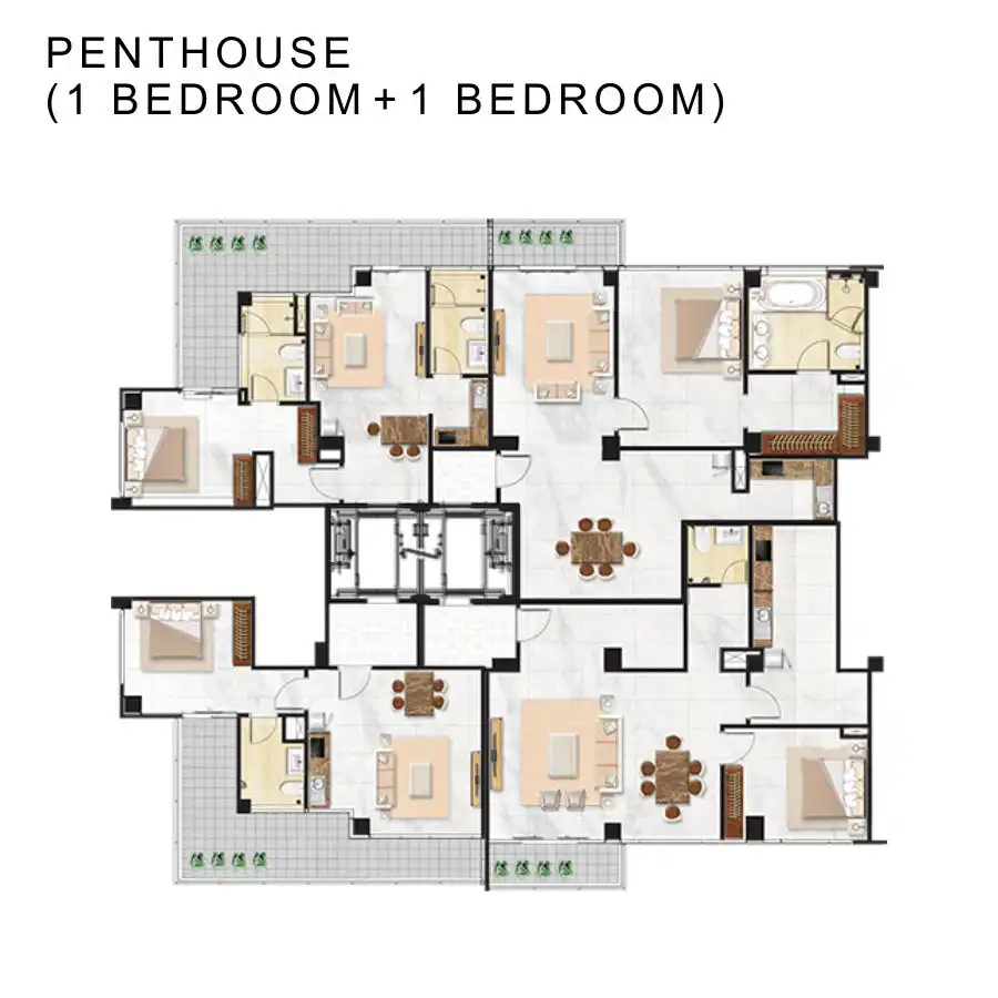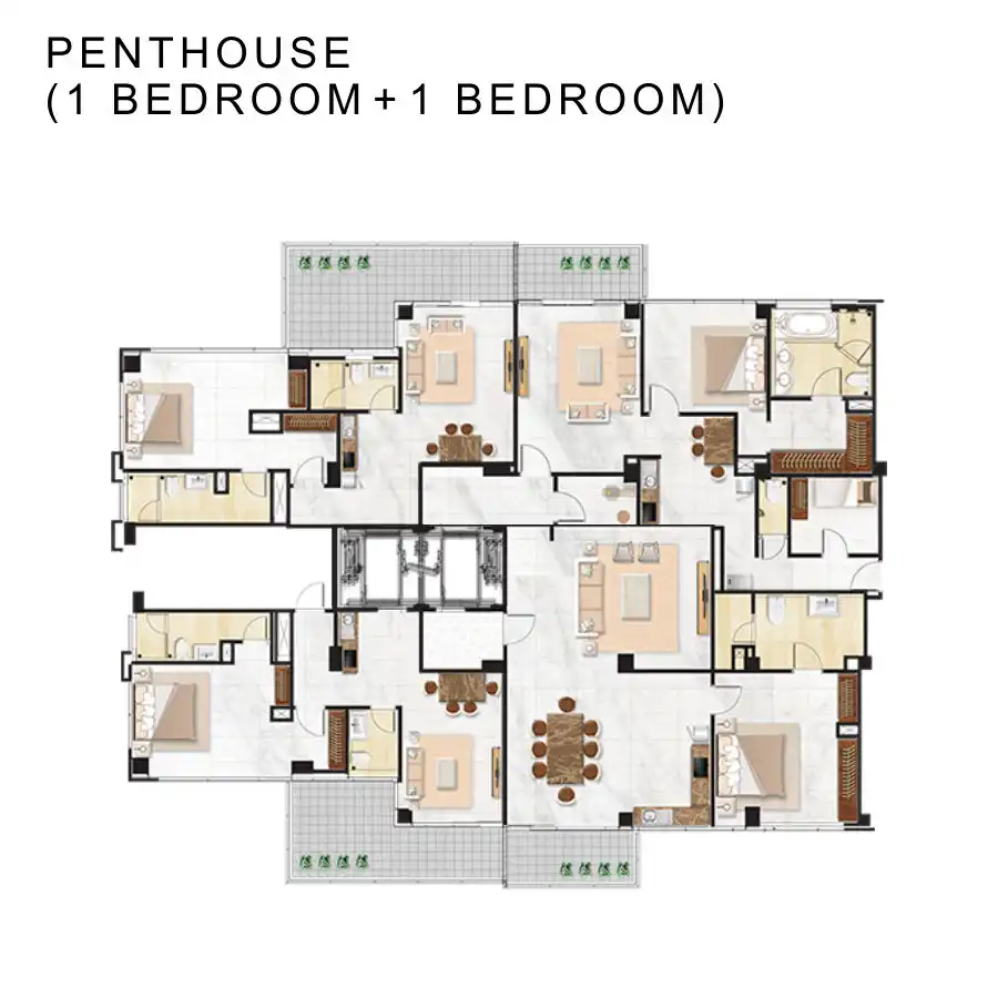 terdiri dari 41 lantai, 206 unit apartemen + 2 unit penthouse + 4 unit townhouse.
