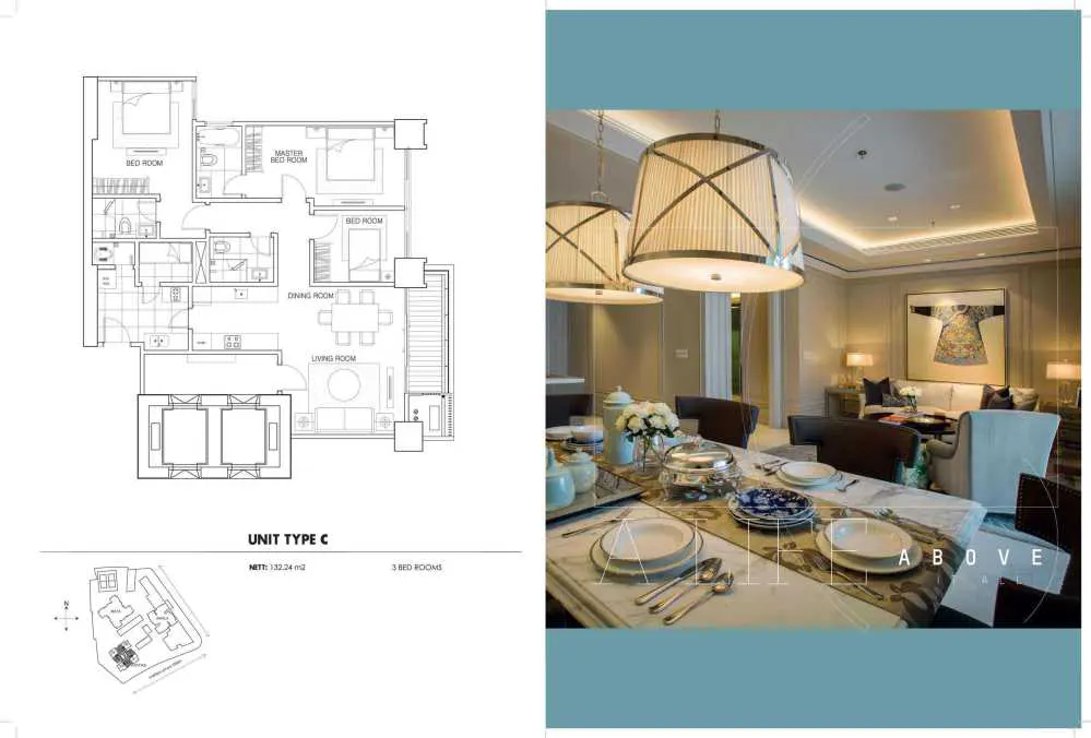 Unit Tipe C dengan net size 132.24 sqm yang terdiri dari 3 kamar tidur