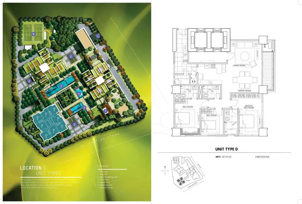 Unit Tipe D dengan net size 147.74 sqm yang terdiri dari 3 kamar tidur